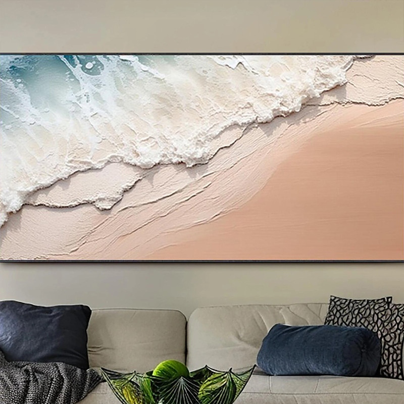 Hand-painted Minimalist Ocean Painting on Canvas 3D Textured Wall Art Earth Tone Seawaves Wall Art Living Room Painting Fashion Room Decor No Frame