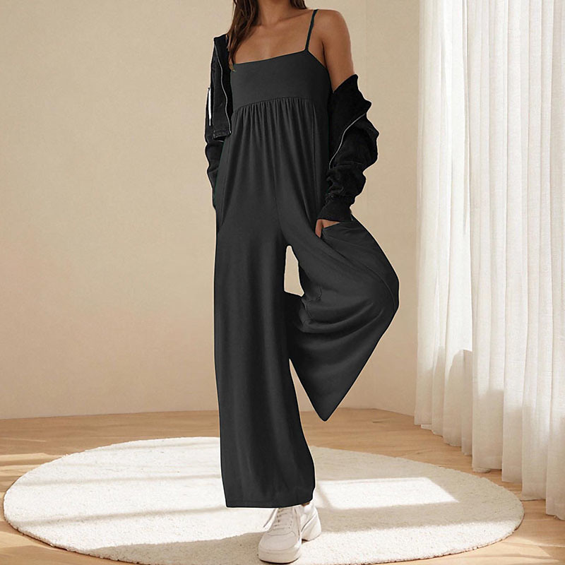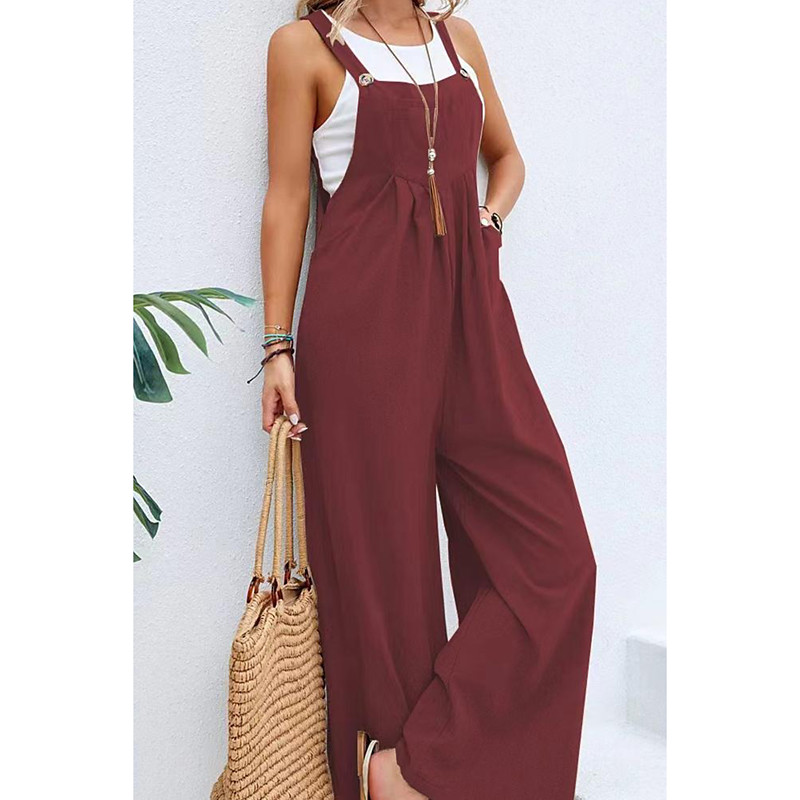 Women's Overall Active Solid Color Sleeveless Jumpsuit Wide Leg Square Neck Pocket Buttons Vacation Daily Loose Fit Black Yellow Pink Summer