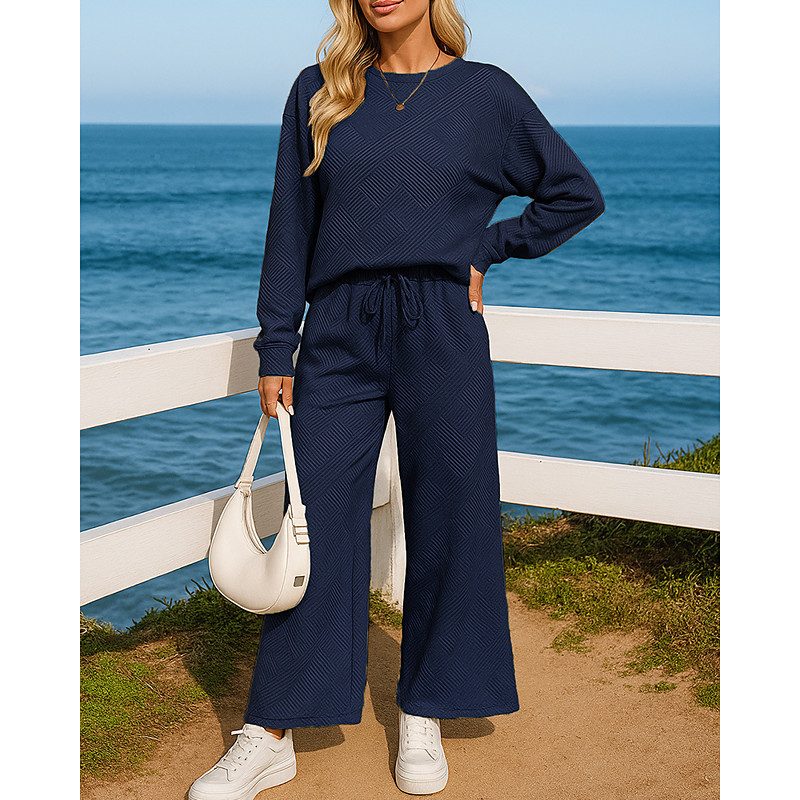 Women's Basic Shirt Two Piece Sets Pants Sets Wide Leg Pants Trousers Long Sleeve Shirt Collar Plain Daily Wear Casual Daily Navy Blue Orange Brown Spring Summer Regular Fit