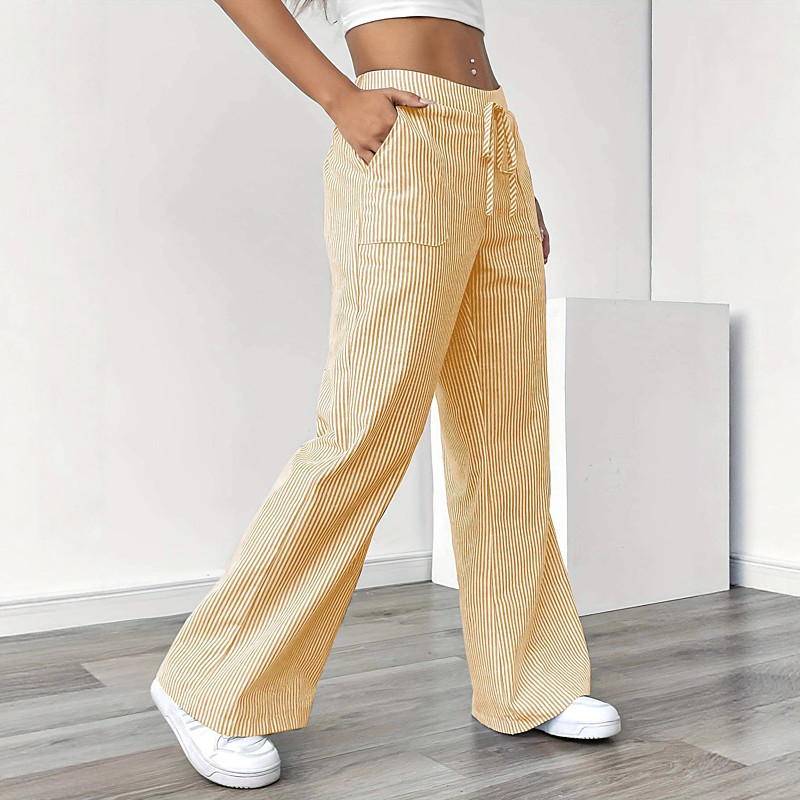 Women's Wide Leg Vacation Vintage Ethnic Style Full Length High Waist Striped Inelastic Streetwear Yellow Red Light Brown Sky Blue Summer Spring Fall Winter Loose Fit