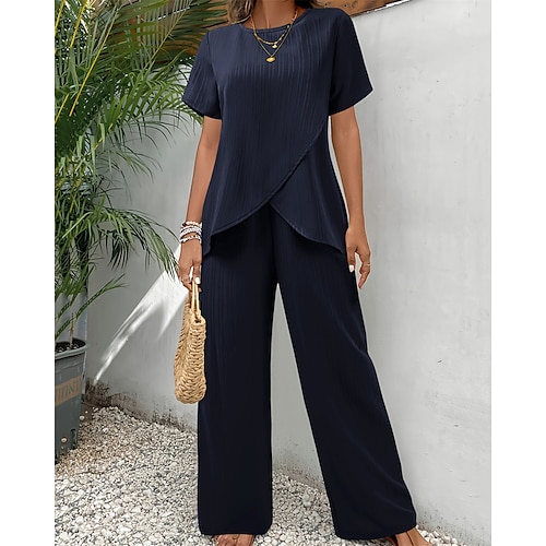 Per donna Moda Streetwear Maglietta Set di Pantaloni Bolero Top Manica Corta Girocollo Tinta unica All'aperto Vacanza Quotidiano Rosso Blu marino Verde Estate Vestibilità regolare Vestibilità comoda