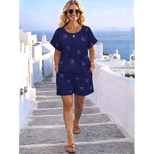 Per donna Set da due pezzi Set di Pantaloncini Bolero Top Manica Corta Girocollo Tinta unica Coulisse Elegante Moda Streetwear Casuale Quotidiano All'aperto Nero Bianco Rosa Estate Vestibilit
