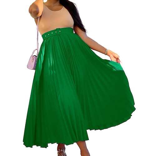 Per donna Gonna da vacanza Elegante Moda Casual Maxi Vita media Gonne Semplice Pieghettato Micro-elastico Streetwear Uscire Lilla Nero Bianco Rosso Estate Spandex Poliestere