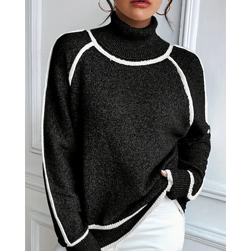 Per donna Felpa Maglione Streetwear Casual Blocco di colori Dolcevita Patchwork Lavorato a maglia Manica Lunga Top Regolari Maglia All'aperto Quotidiano Uscire Nero Giallo Autunno Inverno