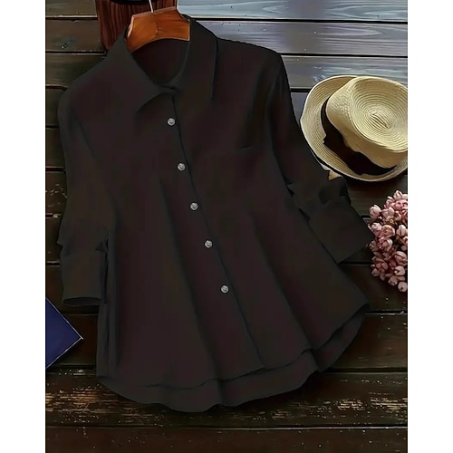 Per donna Camicia Blusa Semplice Attivo Casual Manica Lunga Colletto a Camicia Top Regolari Quotidiano Ferie Uscire Tasca Bottoni Orlo asimmetrico Blu Nero Bianco Giallo Autunno