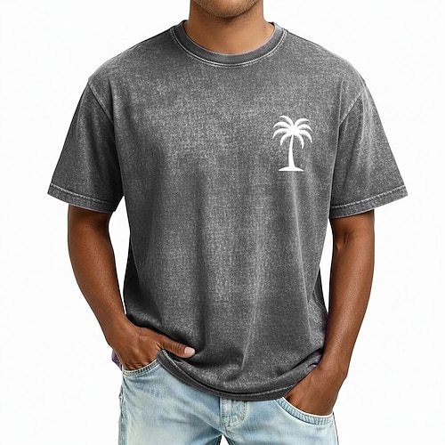 Per uomo Palma di Cocco Maglietta Maglietta per lavaggio minerali Manica Corta maglietta Lavaggio acido Girocollo Camicia Vintage Retrò Casuale Spiaggia Viaggio Blu Viola Grigio Estate Primavera