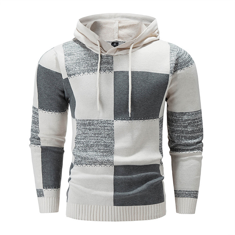 Men's Pullover Sweater Jumper Knit Sweater Ribbed Knit Regular Tops Knitted Plaid Hooded Fashion Basic Vacation Daily Wear Clothing Apparel Fall Winter Wine Black S M L