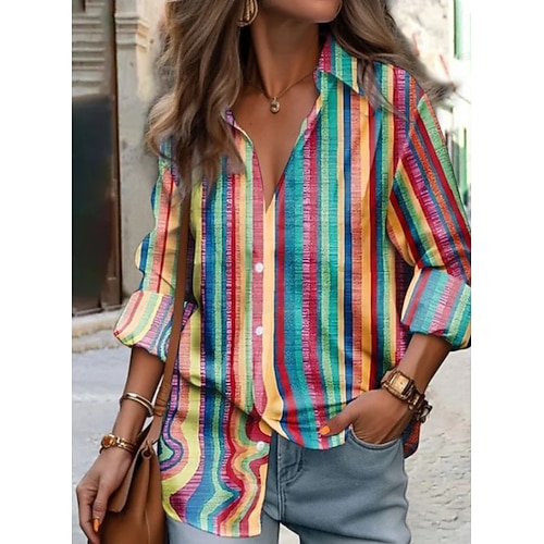 Per donna Camicia Blusa Grafico Geometrico Plaid Vintage Tropicale Quotidiano Manica Lunga Colletto a Camicia Top Regolari Quotidiano Patchwork Bottoni Stampato Blu Rosso Viola chiaro Viola Arancione