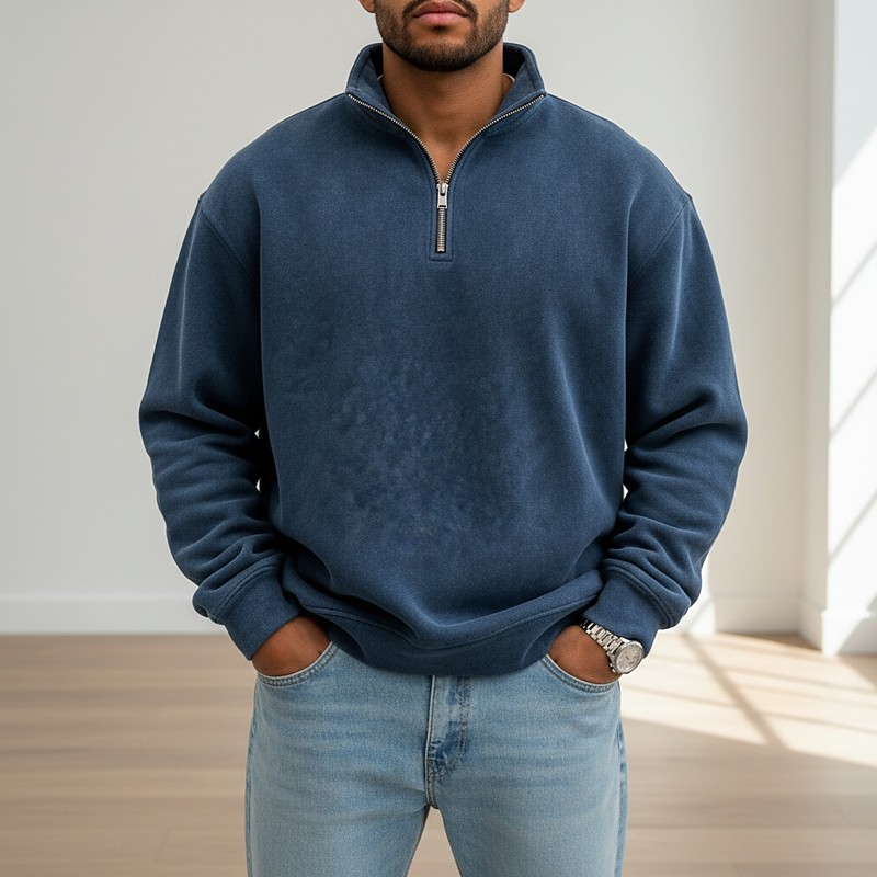 Men's Pullover Sweatshirt Zip Polo Casual Vacation Zip Long Sleeve Fashion Basic Solid Color Plain Fashion Fall Spring Fall Fall Winter Regular Fit Black Pink Navy Blue Dark Green Brown Khaki