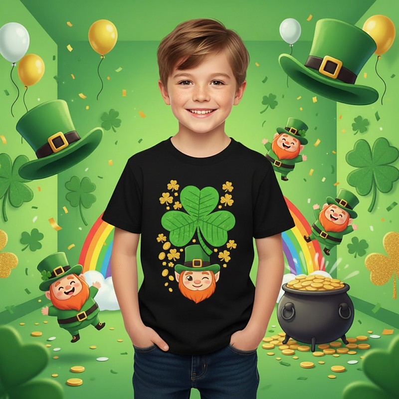 100% Cotton St. Paddy's Day Kids Boys' Black Shamrock St. Patrick's Day T shirt Blouse Crew Neck Short Sleeve Outdoor Dailywear Fashion Streetwear Designer Printing Summer Spring