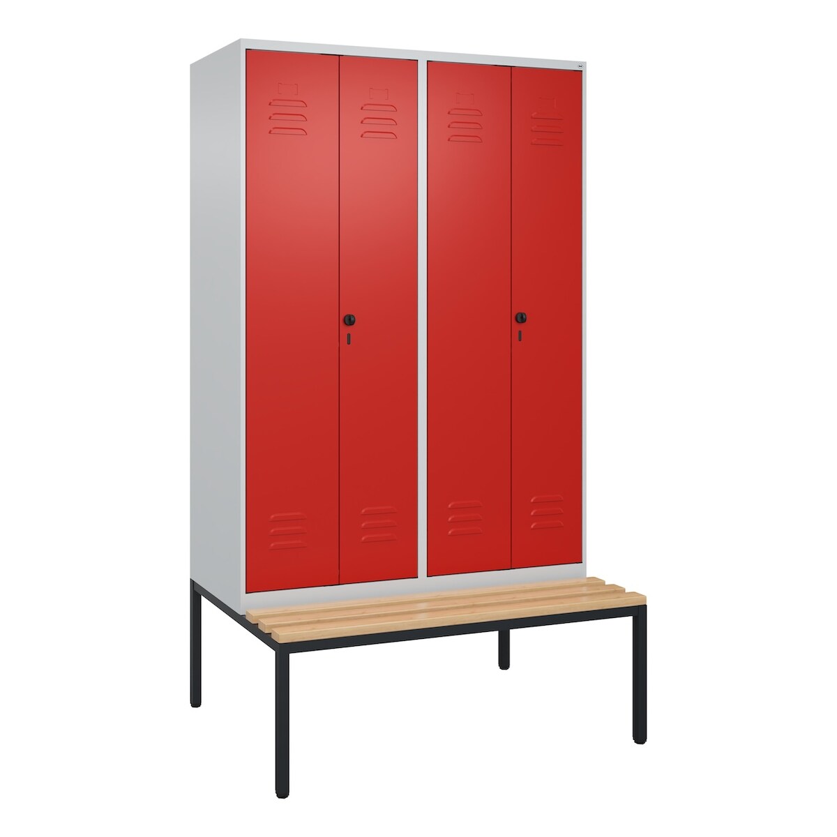 C+P Doppel-Spind Classic PLUS Buche untergebaute Bank 4 Abteile, HxBxT 212x120x82cm, Sicherheitsdrehriegel, Hellgrau/Rot von PROREGAL