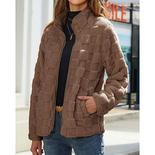 Per donna Cappotto Invernale Cappotto Teddy Caldo Confortevole Cerniera Tasca Casual Tinta unica Vacanza Streetwear Casuale Abbigliamento quotidiano Regolare Collo alla coreana Vestibilità regolare