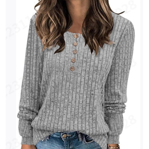 Per donna Blusa Tinta unica Elegante Casual Manica Lunga Girocollo Top Regolari Quotidiano Bottoni Blu Nero Giallo Verde chiaro Rosso Primavera Autunno Inverno
