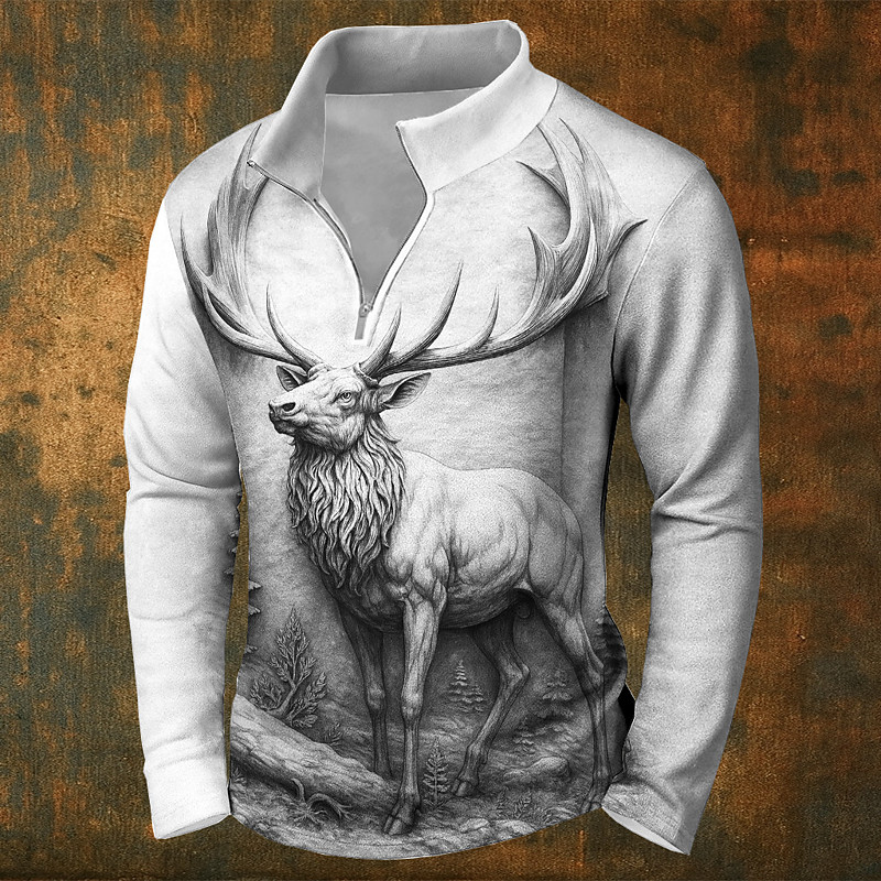 Men's Deer Sweatshirt 3D Zip Home Party Work White Green Fall All Seasons Designer