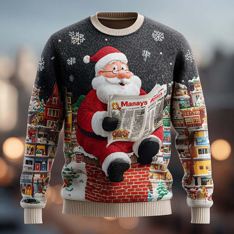 Ugly Christmas Sweater Men's Santa Claus Pullover Sweater Jumper Knitwear Crewneck Casual Vacation Daily Festival 3D Print Keep Warm Long Sleeve Spring Fall Winter Black Red Green
