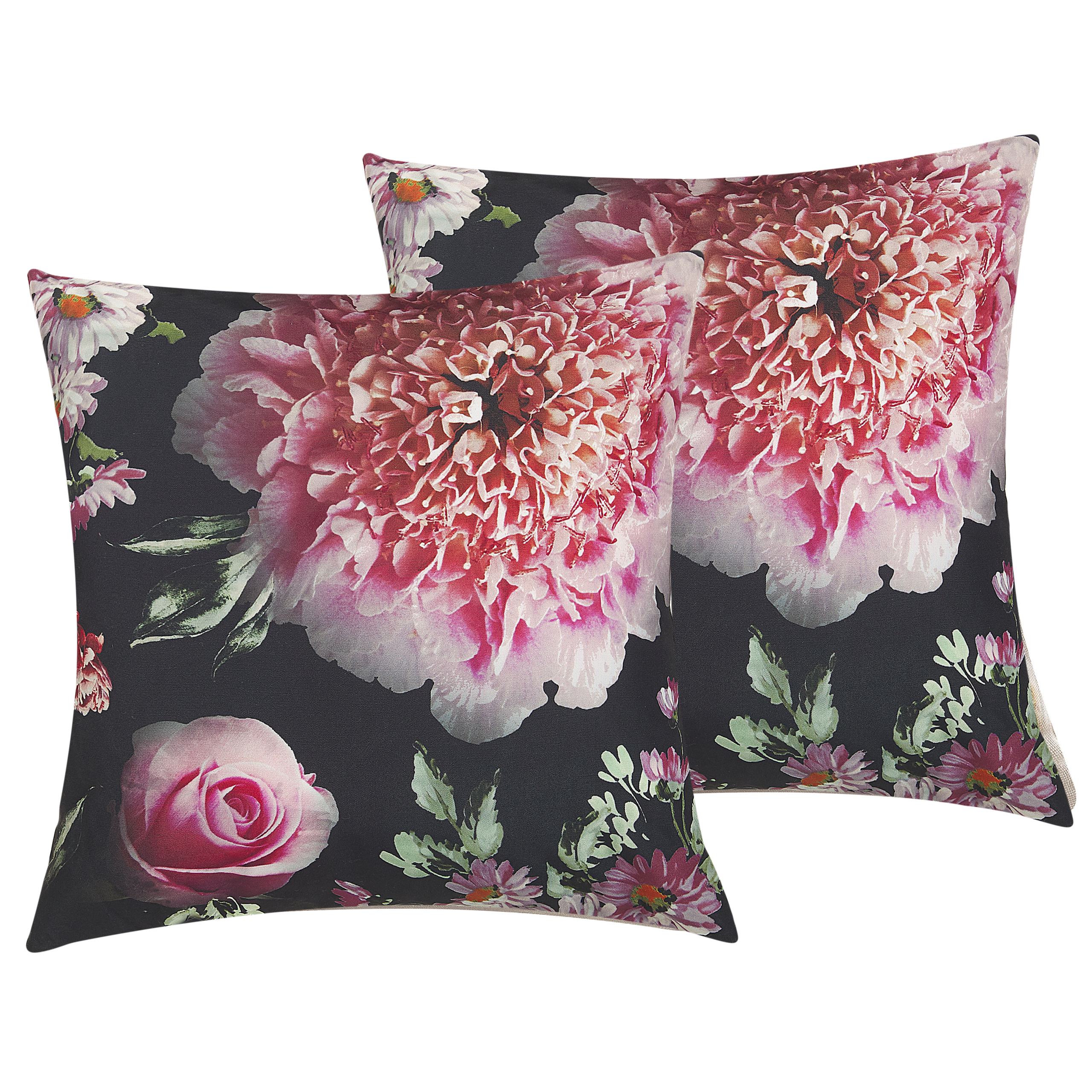 Koristetyynysetti 2 kpl HEDERA 45 x 45 cm Musta Kukkakuvio