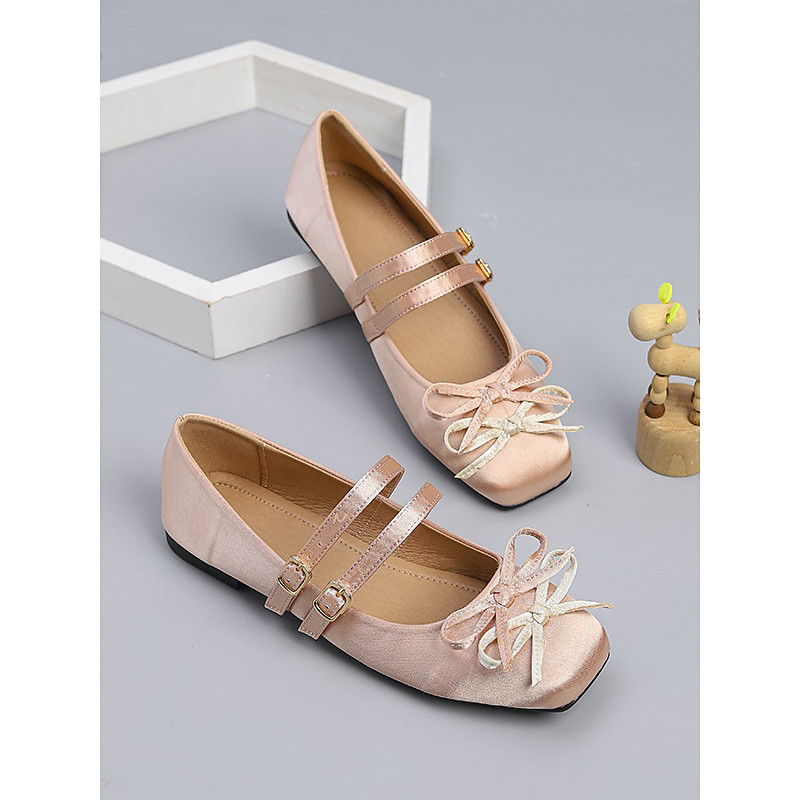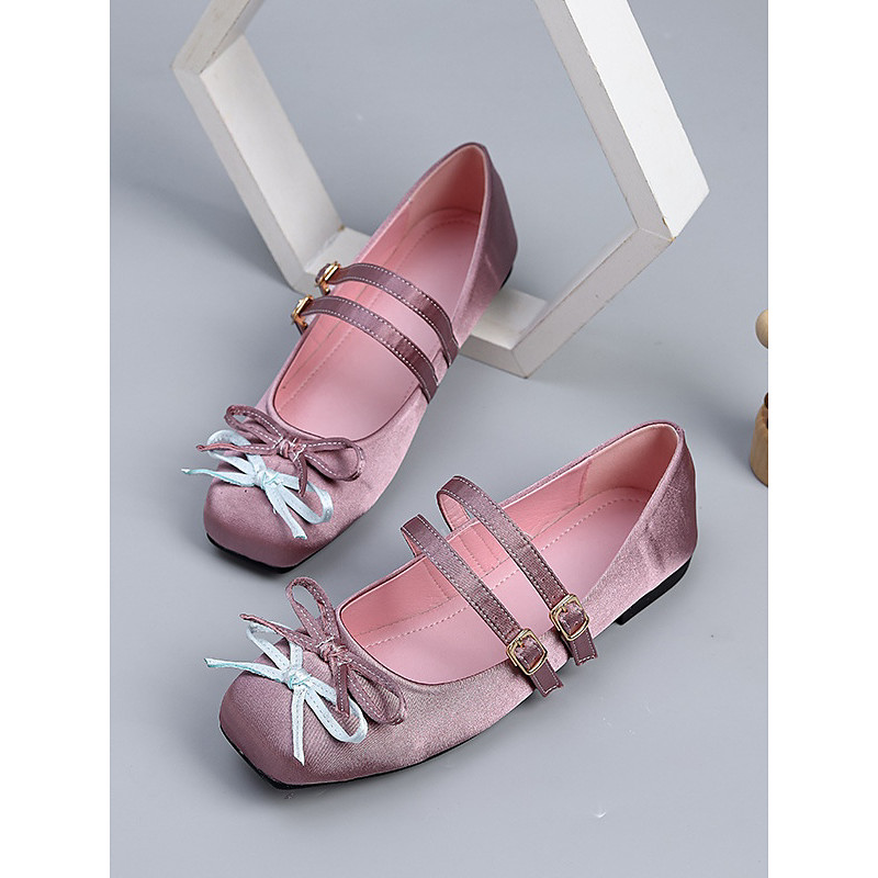 Women's Multicolor Mary Jane Ballet Flats, Bow Detail Comfortable Dress Shoes for Bridesmaids at Outdoor Garden Weddings