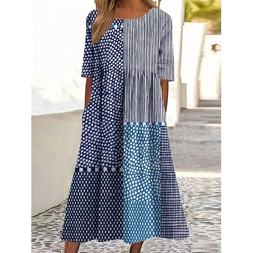 Per donna Abito maxi Vestito Casual Classico Spiaggia Vestibilità comoda Grafico Astratto Mezza Manica Girocollo Blu Nero Viola Arancione Estate Primavera