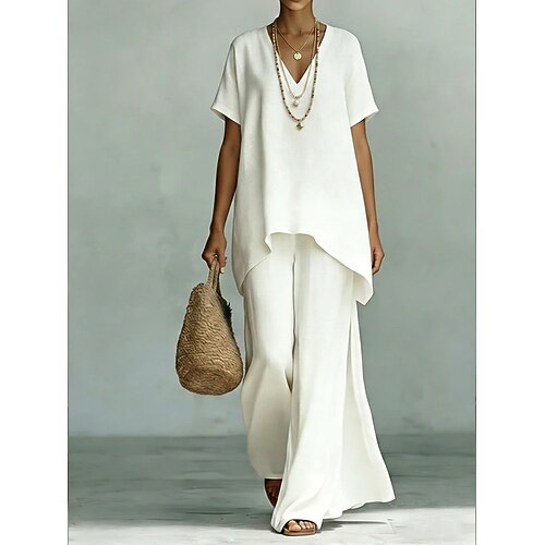 Per donna Set di biancheria in cotone Set di Pantaloni Manica Corta Scollo a V Tinta unica Elegante Moda Streetwear Casuale Quotidiano All'aperto Blu Nero Bianco Estate Vestibilità comoda