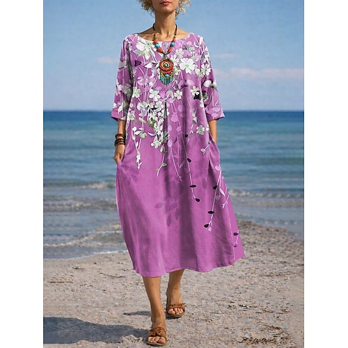 Per donna Abito maxi Abito a trapezio Casual Quotidiano Data Uscire Vestibilità comoda Floreale Grafico Manica 3/4 Girocollo Blu Verde chiaro Viola Verde Estate Primavera