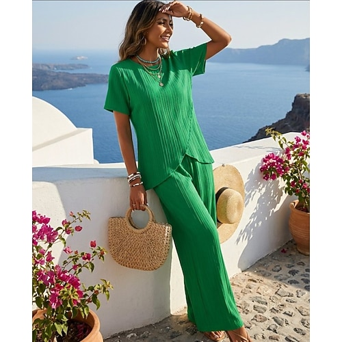 Per donna Maglietta Set di Pantaloni Bolero Top Manica Corta Girocollo Tinta unica Moda Streetwear Quotidiano All'aperto Vacanza Rosso Blu marino Verde Estate Vestibilità regolare Vestibilità comoda