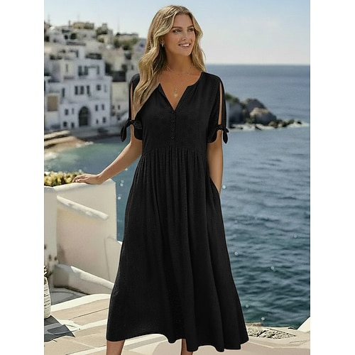 Per donna Abito Midi Abito Boho Abito a trapezio Abito Estivo Abito Pieghettato Elegante Moda Moderno Casuale Quotidiano All'aperto Vestibilità comoda Semplice Manica Corta Scollo a V Blu Nero Bianco