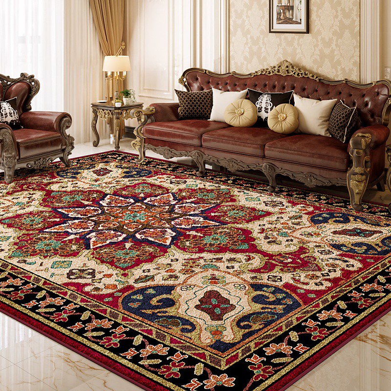 Retro Carpet Persian Living Room Rug Bedside Floor Mat Non-Skid Foldable Bedroom Imitation Cashmere Thickened Plush Carpet