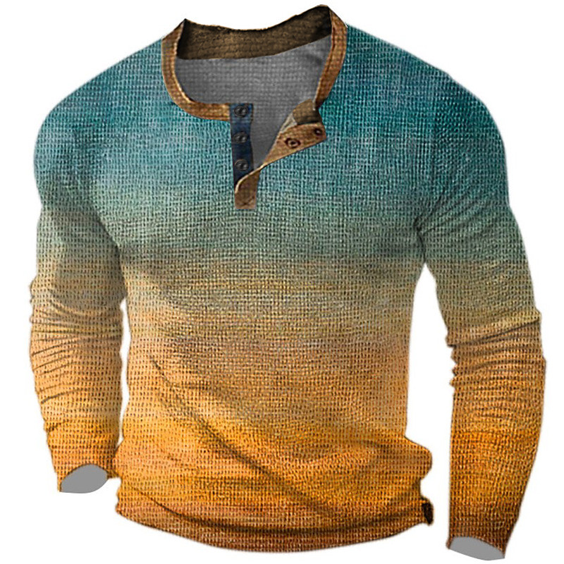Men's Graphic Gradient Waffle Henley Shirt Casual Style Classic Style Long Sleeve 3D Print Fashion Designer Basic Daily Outdoor Spring Fall Blue Orange Brown Gray Henley Henley T-Shirt