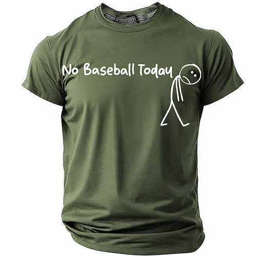 'Niente Baseball Oggi' T-Shirt Grafica da Uomo Figurina a Bastone Triste Maglietta Corto Maniche Rossa per Fan di Baseball