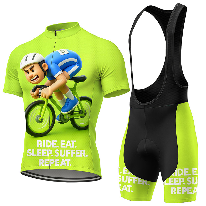 Men's Cycling Jersey with Bib Tights Cycling Jersey Cycling Jersey with Bib Shorts Short Sleeve Mountain Bike MTB Road Bike Cycling Green Cartoon Bike UV Resistant 3D Pad Quick Dry Reflective Strips