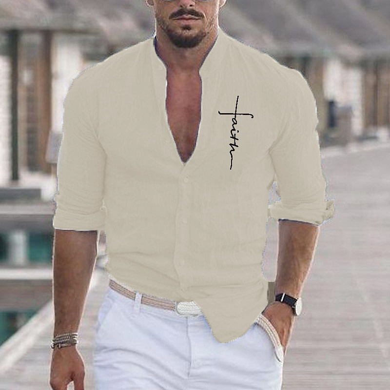 Men's Shirt Beach Shirt Graphic Prints Outdoor Vacation Black White Khaki Gray Long Sleeve Stand Collar Summer Spring Clothing Apparel Print