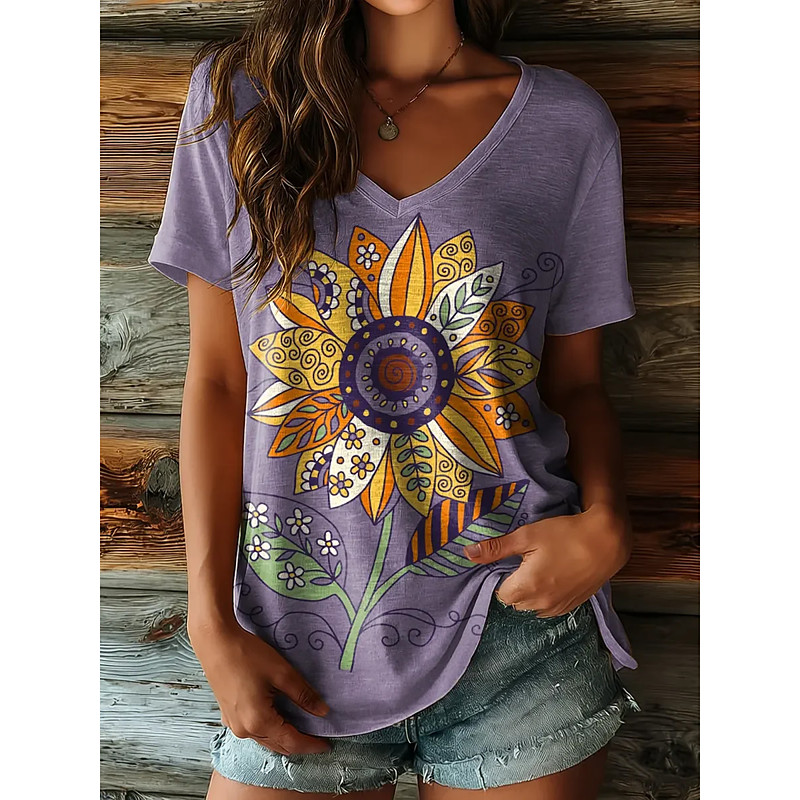 Women's T Shirt Floral Graphic Vintage Stylish Casual Short Sleeve V Neck Regular Tops Daily Print Blue Pink Purple Summer Spring