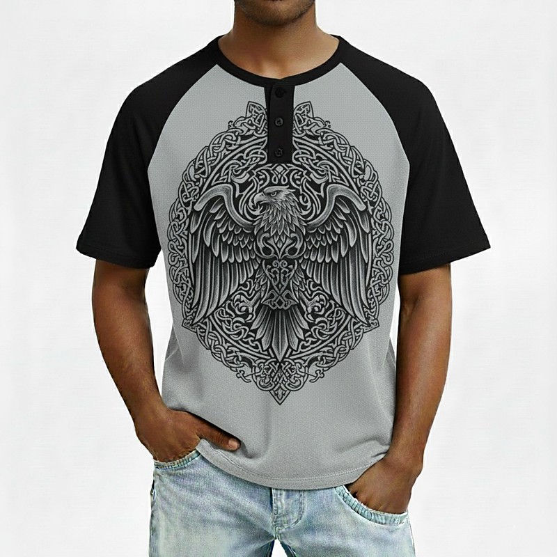 Men's Eagle Viking Henley Shirt Short Sleeve Fashion Designer Vintage Style Daily Outdoor Spring Spring Fall All Seasons Dark Blue Dark Green Gray Henley Henley T-Shirt