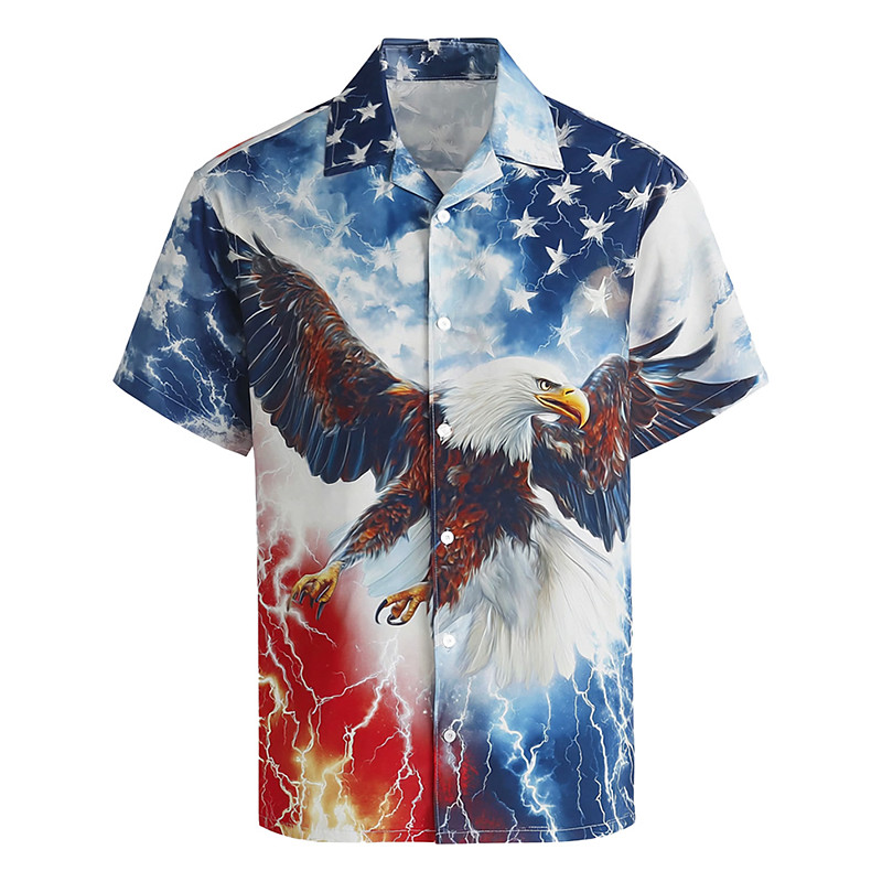 Men's Eagle US Flag America's 250th Anniversary Shirt Button Up Shirt Short Sleeve Vintage Retro Outdoor Holiday Summer Spring Turndown 3D Print Collared Shirts Blue Blue 2# Blue 1#