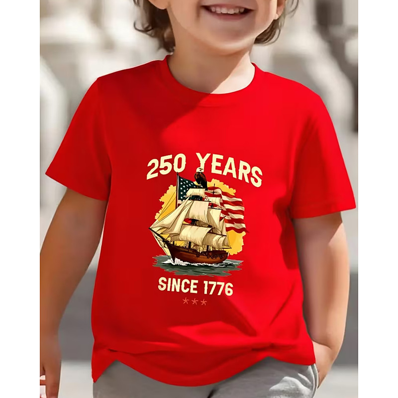 100% Cotton Kids Boys' Black White Red Flag Ship 250th Anniversary T shirt Blouse Crew Neck Short Sleeve Outdoor Dailywear Fashion Streetwear Designer Print Summer