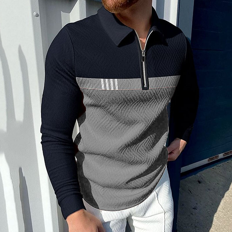 Men's Zip Polo Golf Shirt Business Daily Wear Quarter Zip Long Sleeve Fashion Classic Style Color Block Zipper Spring Fall Red Navy Blue Dark Green Dark Grey Zip Polo