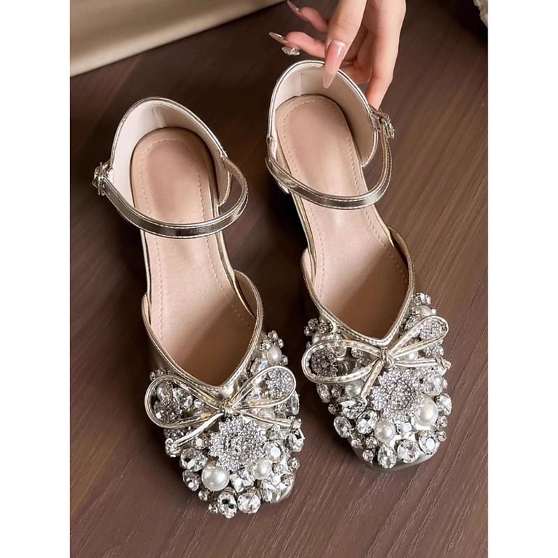 Women's Silver Rhinestone Dance Shoes with Crisscross Straps - Open-Toe Ballroom and Latin Heels
