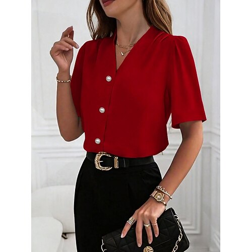 Per donna Camicia Camicia button-down Camicia casual Bottoni Semplice Elegante Classico Moderno Manica Corta Scollo a V Top Regolari Quotidiano Ferie Uscire Blu Nero Bianco Vino Albicocca Estate