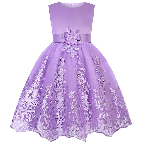 Kinder Mädchen Partykleid Einfarbig Ärmellos Kurzarm Besonderer Anlass Prinzessin Polyester Partykleid Sommer Frühling Kinder Purpur