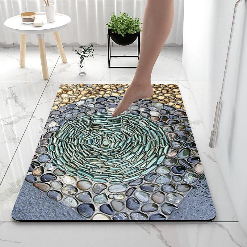 Smooth Stone Diatomaceous Earth Bath Mat Non-slip Super Absorbent Bathroom Rug Door Mat New Design