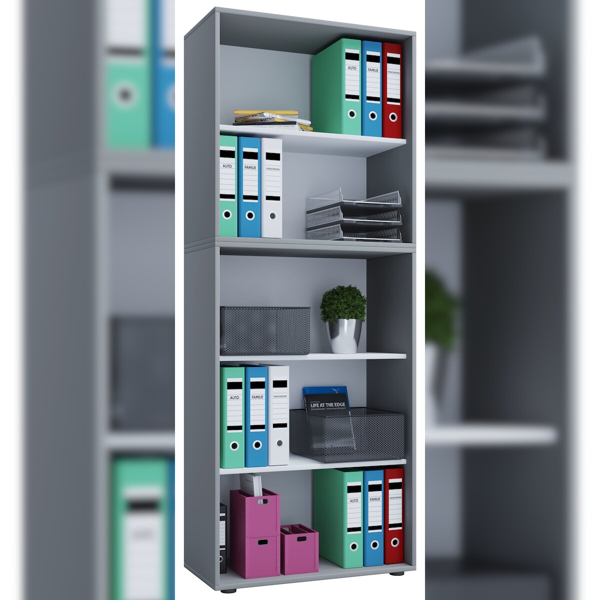 VCM Büroregal & Bücherregal Lona Grau B. 70 x H. 184 x T. 37 cm