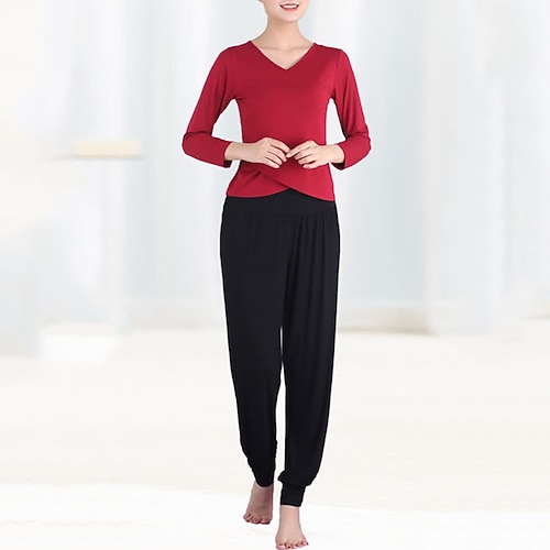 Per donna Magliette sportive parte superiore del pilates Sport in alto Scollo a giro Delicato sulla Pelle Traspirante Ampio Manica Lunga Gli sport Tinta unica Top Per Pilates Danza Zumba