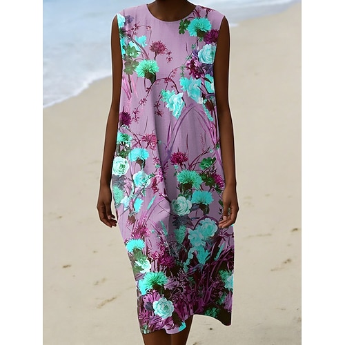 Per donna Abito Midi Abito a Tubino Vacanza Casual Uscire Vestibilità regolare Floreale Grafico Senza Maniche Girocollo Blu Giallo Viola Verde Estate Primavera