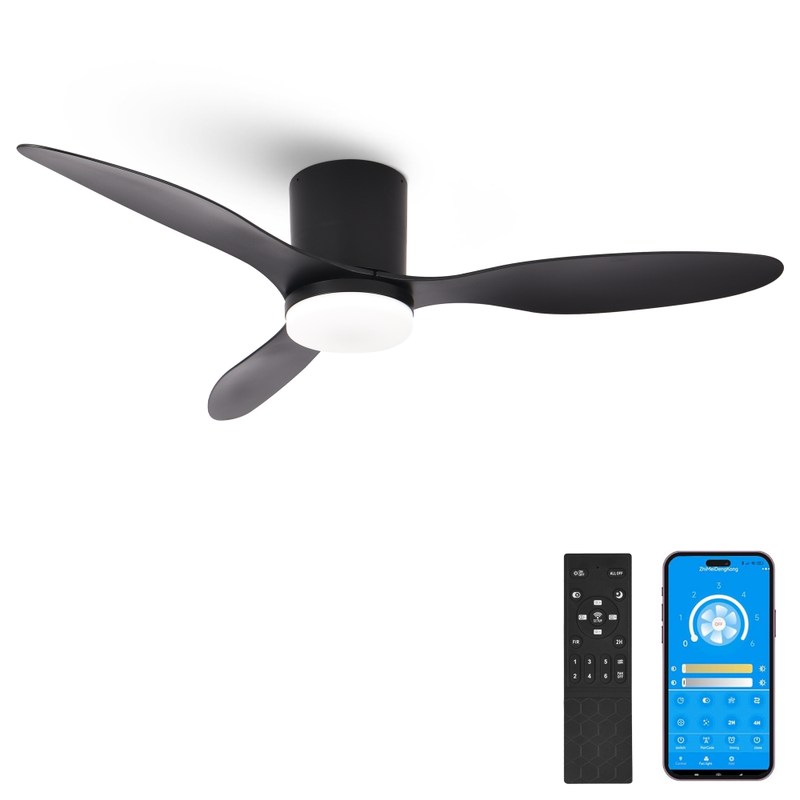 Parrot Uncle 42-Zoll-Deckenventilator mit LED-Licht und App-Steuerung, 48W DC-Motor, Schwarz