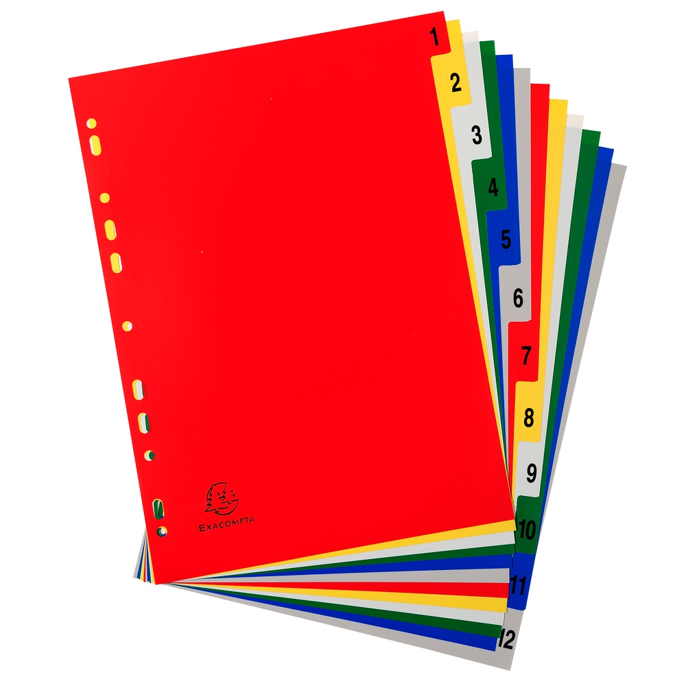 Exacompta Register für Ordner und Ringbücher, aus PP, 12 Positionen, Taben 1-12, für DIN A4