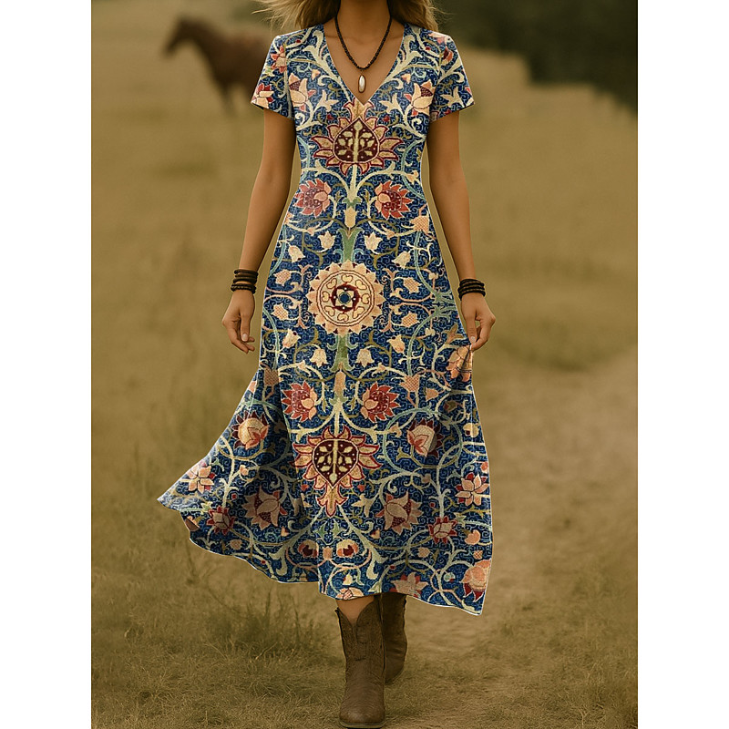 Women's Maxi Dress Casual Dress A Line Dress Summer Dress Elegant Vacation Casual Beach Regular Fit Floral Graphic Short Sleeve V Neck Pink Red Blue Orange Summer Spring