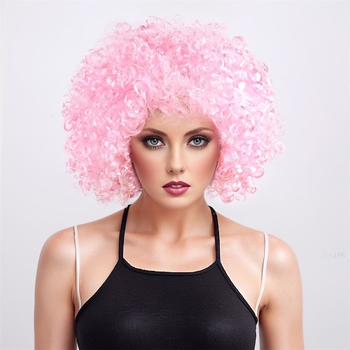 Parrucca di Carnevale Biondo Rosa Rosso Riccio Afro Corto Parrucca sintetica da festival Martedì grasso Parata Capelli per costumi da cosplay per Da donna