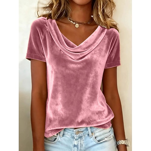 Per donna Maglietta Tinta unica Moda Classico Casual Manica Corta Collo di pile Top Regolari Quotidiano Uscire Weekend Blu Argento Nero Rosa Vino Estate Primavera