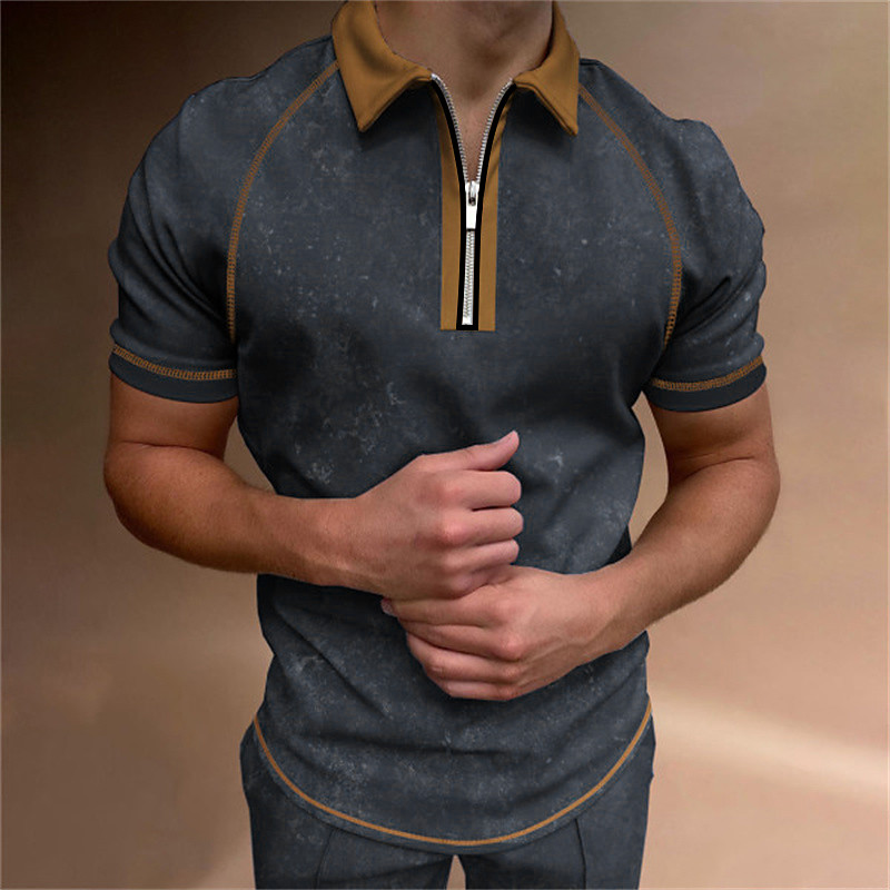 Herren Farbblock Polo Reißverschluss-Polo Golfshirt Kurzarm Revers Mode Lässig Outdoor Sport Täglich Spleißen Sommer Schwarz Rosa Rote