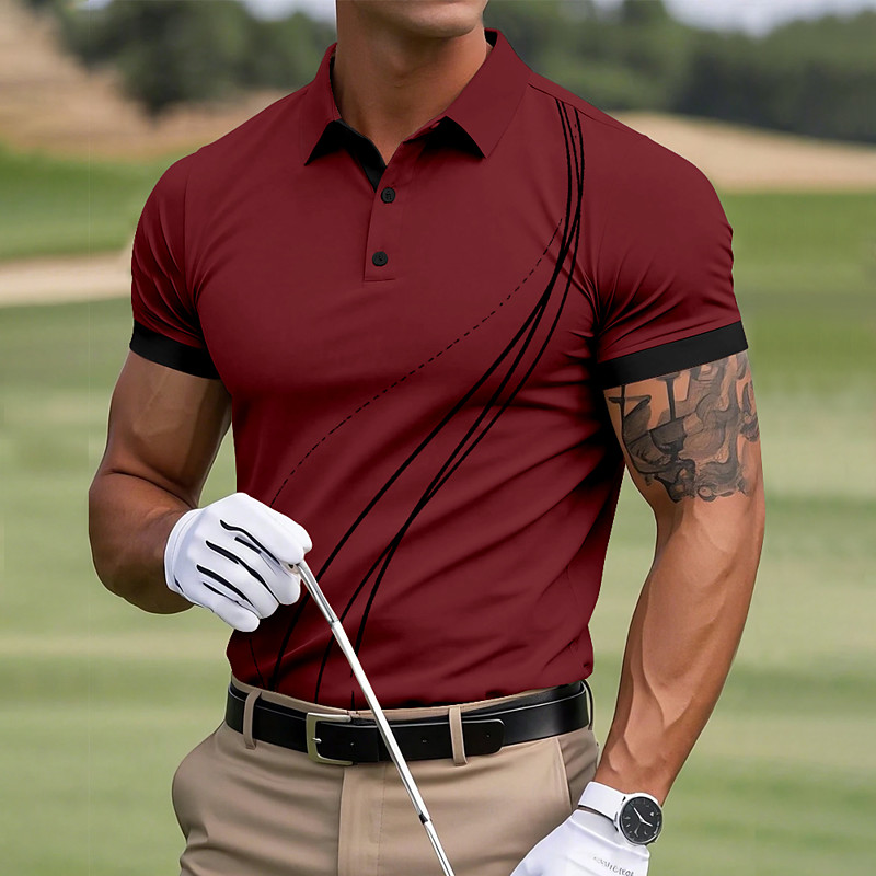 Men's Golf Line Polo Sports Polo Shirts Short Sleeve Polo Shirts Collared Shirts Sportswear Casual Outdoor Athleisure Buttons Summer Black Yellow Red